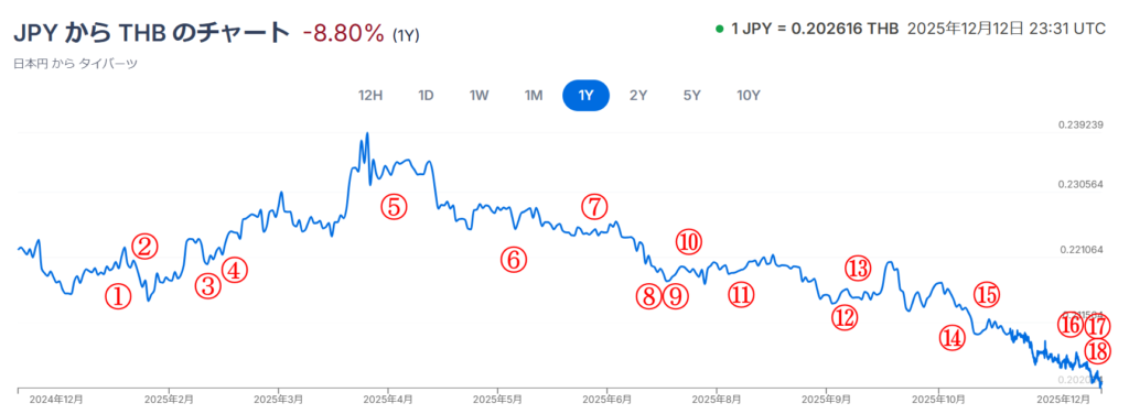 ”¥10,000=2,000”を割り込む事は絶対無いだろう”と思っていた日本円/タイバーツ両替レート。