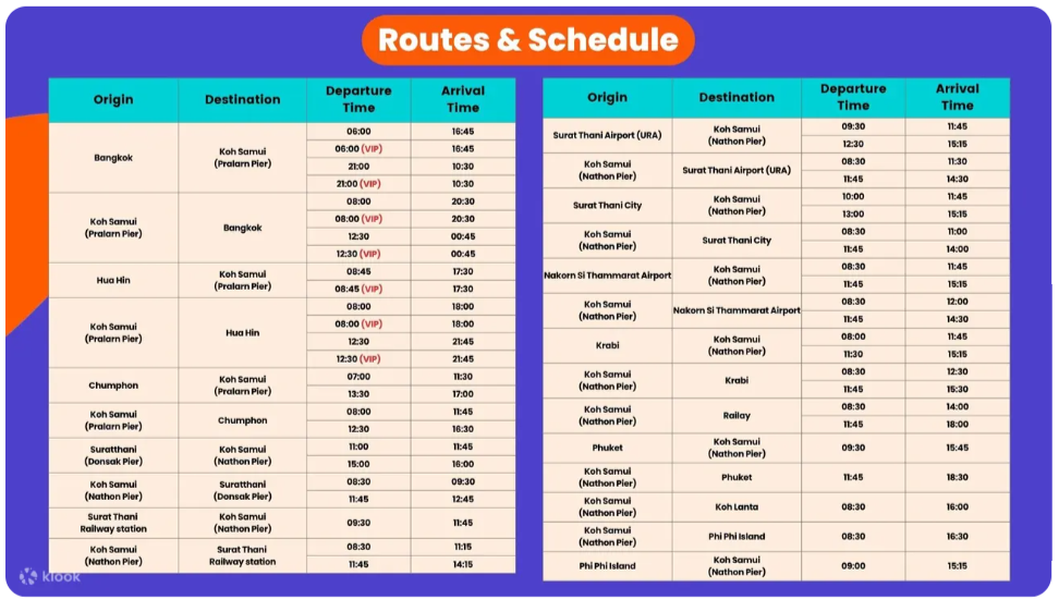 スラタニ―空港⇒ドンサック港1.5H、ドンサック港⇒サムイ島・ナトン桟橋2.0H。