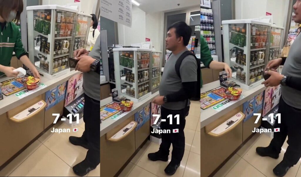 日本に訪れたタイ人旅行者がレジ清算前にカップラーメンを開封しお湯を注いだ後にレジ清算をしていたのが物議を醸している様で。