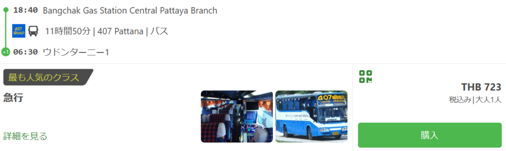 しかし今回選んだのはパタヤからウドンタニーへの長距離バス移動だ。