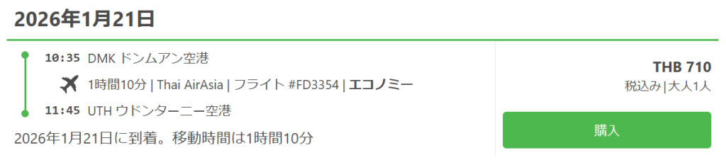 繁忙期を外したウドンタニー訪問なら明らかにフライト一択だな…。