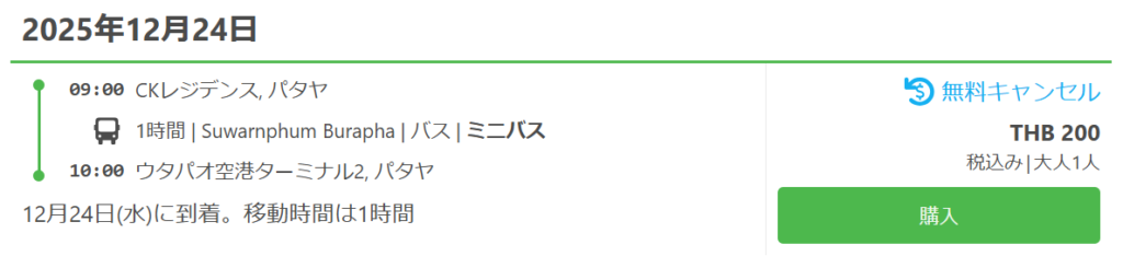 パタヤからウタパオ空港:BIG-Cサウスパタヤ発(マイクロバス)で200THB。