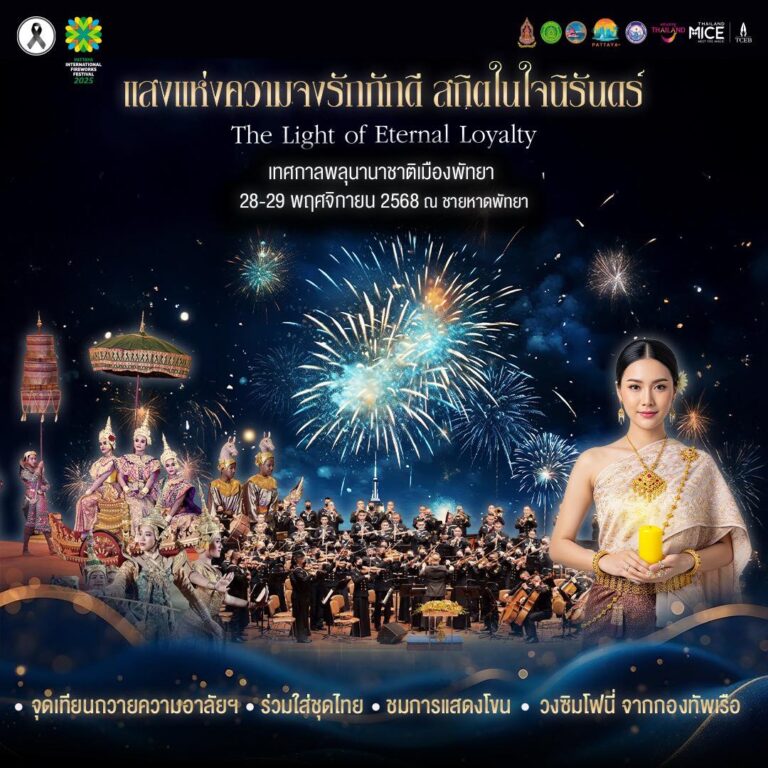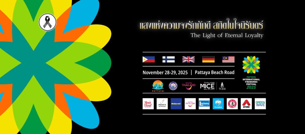 例年であればイベント名は『PattayaInternationalFireworksFestival2025』としているだが、今年はキシリアット王太后ご逝去によりイベント名称を変え『TheLightEternalLoyalty(永遠に心に灯る忠誠の光)』と言う名称での開催となっている。