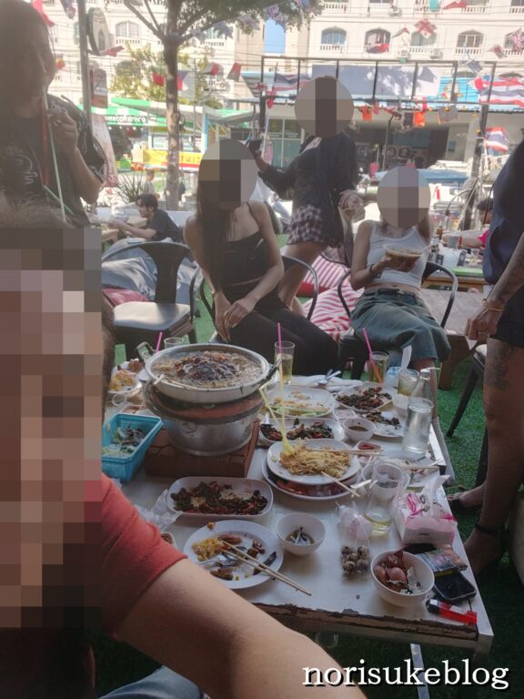 前項から引き続き当初4人でムーカタを食べ飲んでいたのだがその後友人達も集まり始め総勢10人程のグループとなっていた。