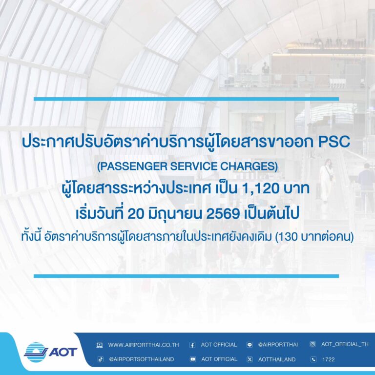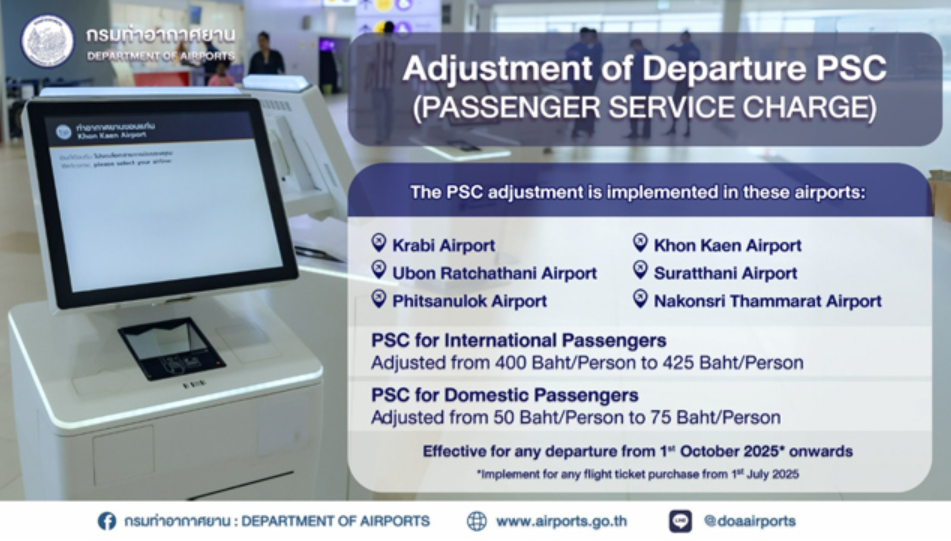 2025年10月、ⅮOT(タイ空港局)が管理するクラビ・スラタニ―等々の空港施設、国際線400⇒425THB、国内線50⇒75THBの値上げとなっていた。