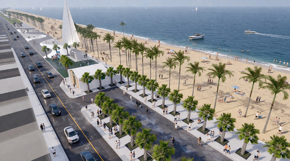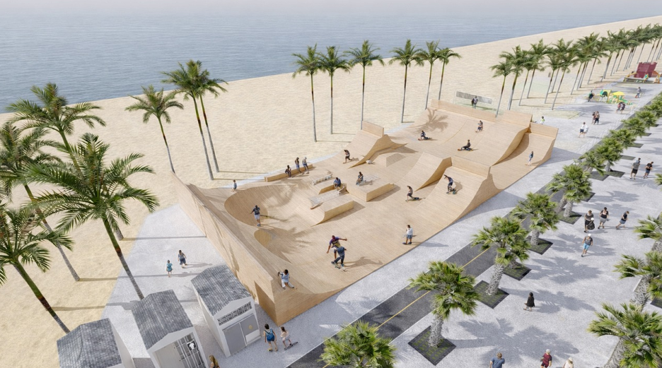 今回の案はビーチと歩道にスケボーエリア・ビーチバレーエリアを・屋外フィットネスエリアなどを設け「レジャー・健康促進」と言ったコンセプトに改良する様だ。