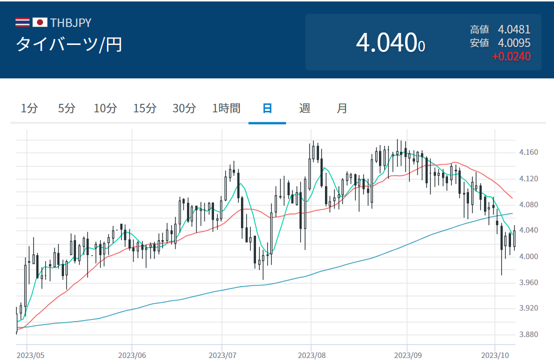 即ち、現状ドル高バーツ安が進行しているとの事です。