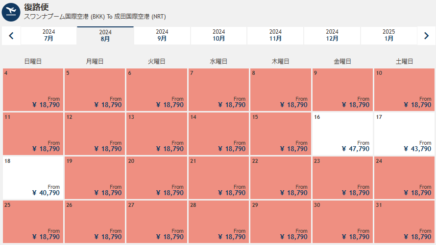 画像が小さく見辛くて申し訳無いのだが、念の為調べた所、日本のお盆期間は往復共にセール対象外期間となっている。